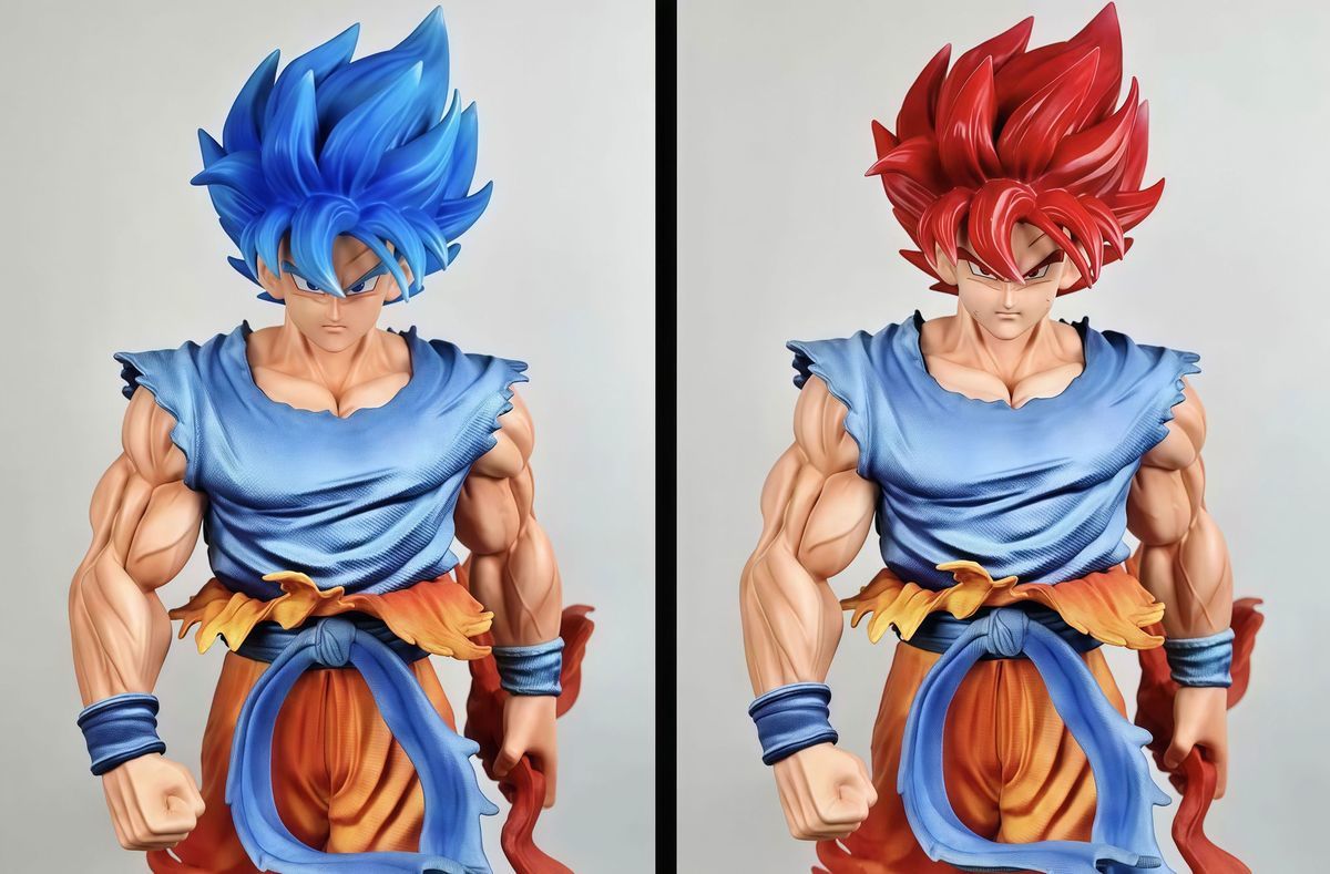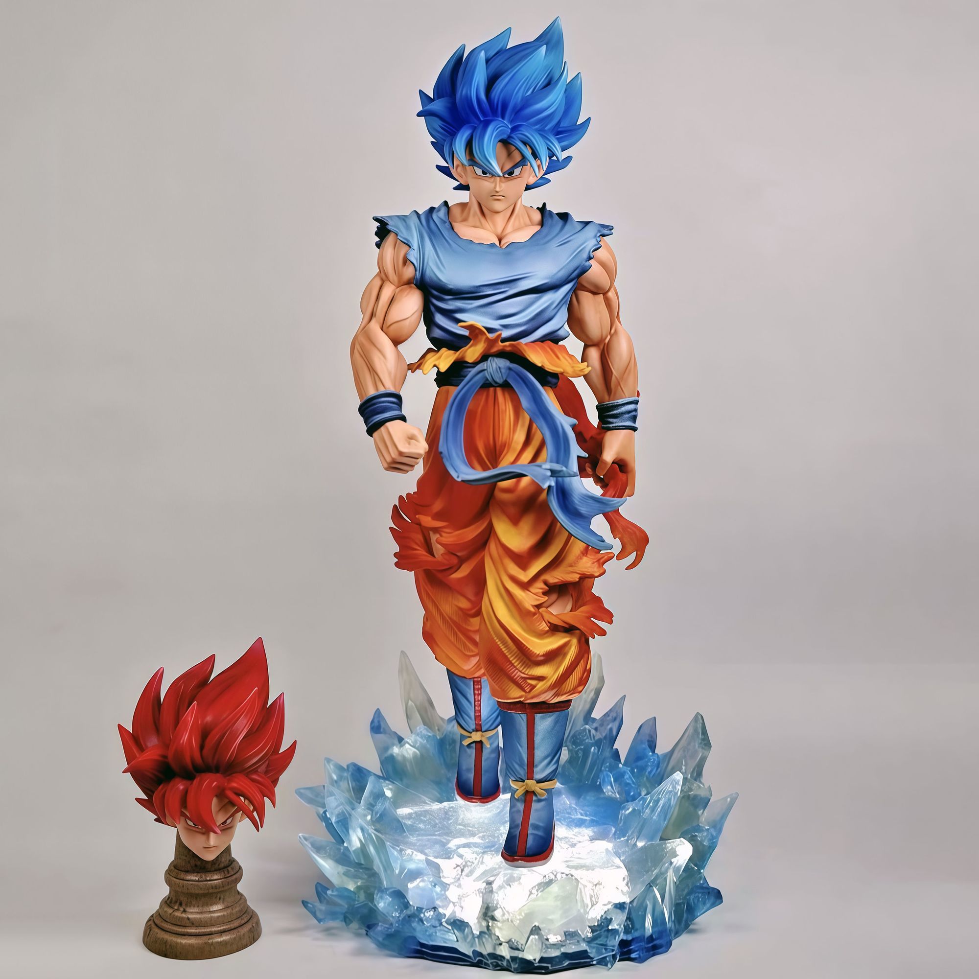 Two interchangeable head sculpts(ssjs and ssjss),light-up base.